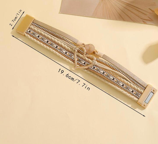 Bohemian Cubic Zirconia & Heart Decor Layered Bracelet